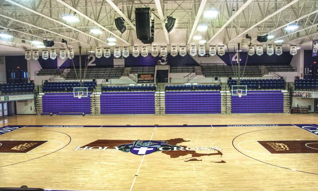 Renovations to the existing Hart Center arena included electrical installations for the new entrance to the building, new lighting systems for the entire facility, and state-of-the-art A/V systems. The renovated field house features a fully modernized basketball and ice hockey arena for the Holy Cross NCAA Division 1 programs, exercise studios, weight training rooms, shower and locker room, and the college’s centers for health, wellness, and fitness programming.