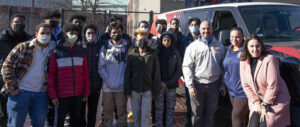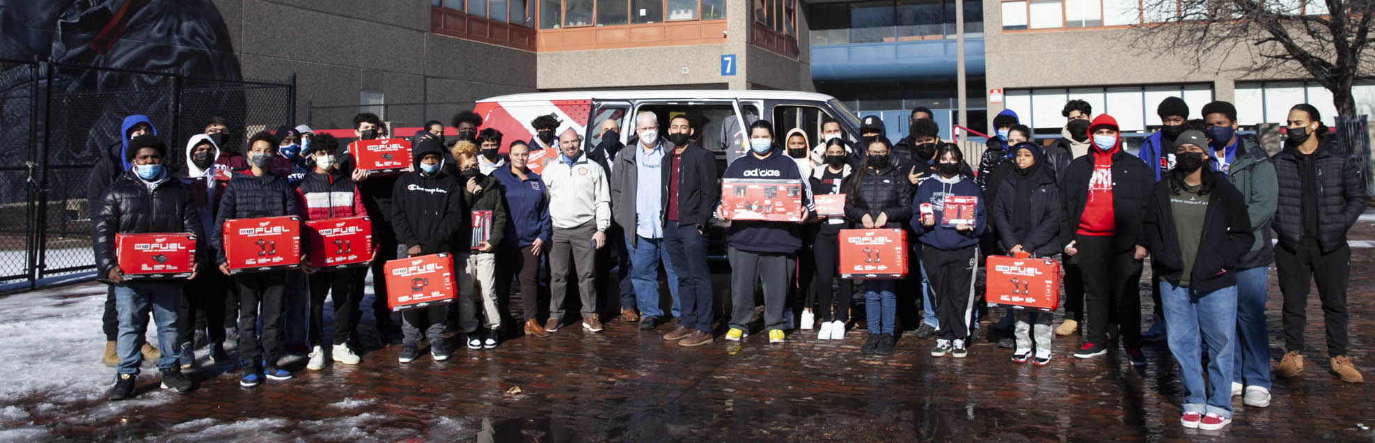 At an event on Feb. 9, Madison Park students and staff greeted IBEW Local 103 and NECA representatives outside of the school to help usher in the donations. IBEW Local 103 purchased the van for Madison Park and decorated it in the school’s colors, with “Madison Park Electrical Dept.” printed along the side. Supply donations contributed by NECA included power tools, hard hats, PPE and branded merchandise.