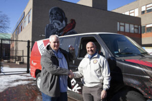 Lou Antonellis and Madison Park electrical instructor, Michael Norris, pose with the keys to the school’s new van.