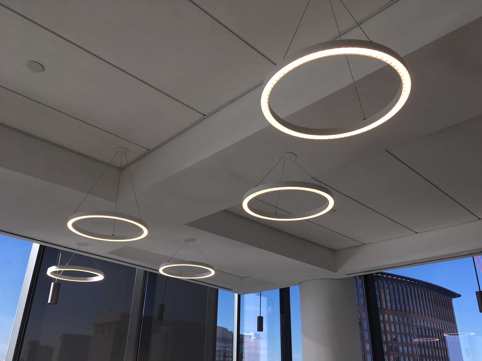 The NECA Boston Chapter contractor furnished and installed the extensive lighting package, which consisted of more than 1,300 fixtures. State-of-the-art Creston lighting controls are also installed throughout the six-and-a-half floors occupied by BCG.