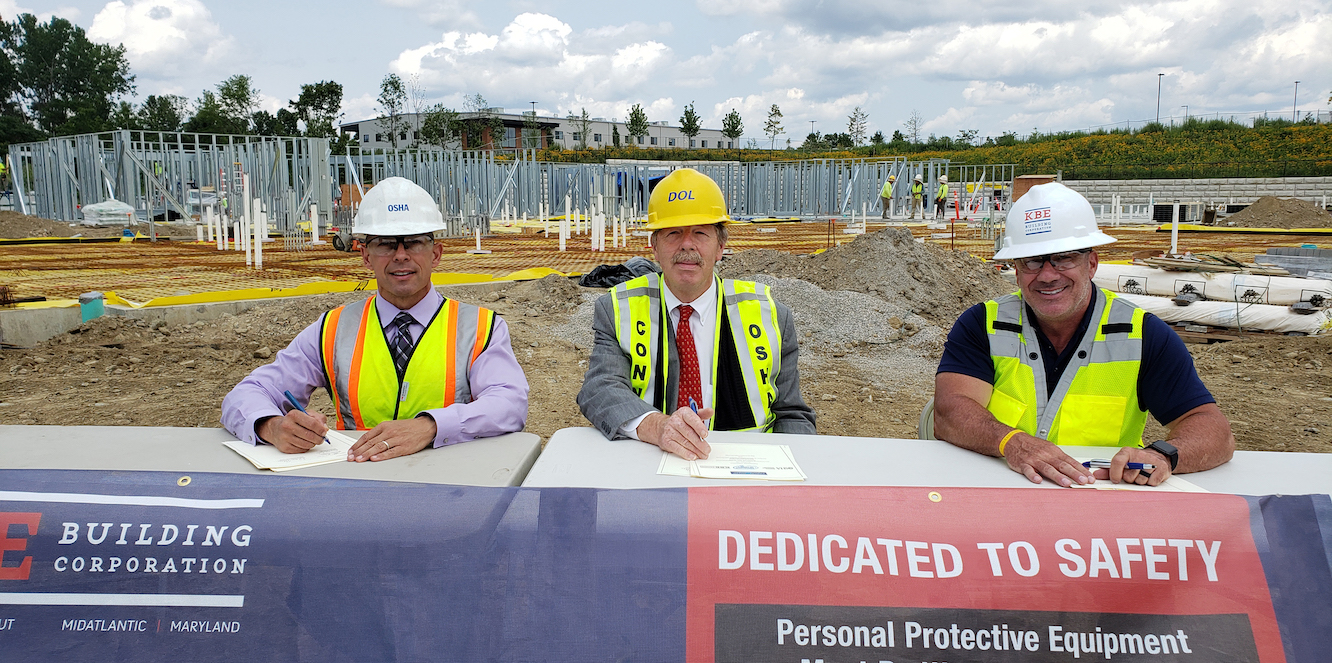 Farmington, CT – KBE Building Corporation has earned its seventh Safety Training Partnership with the Occupational Safety and Health Administration (OSHA) Hartford area office and the Connecticut Department of Labor Division of Occupational Safety and Health (CONN‐OSHA) On‐Site Consultation Program.