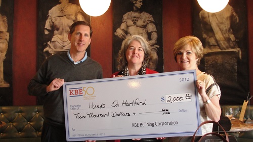 Hartford, Conn – As part of its hands-on charitable giving program 50 Ways to Make a Difference, KBE Building Corporation has donated $2,000 to Hands On Hartford, a direct service program that provides food and housing opportunities to the city’s neediest residents.