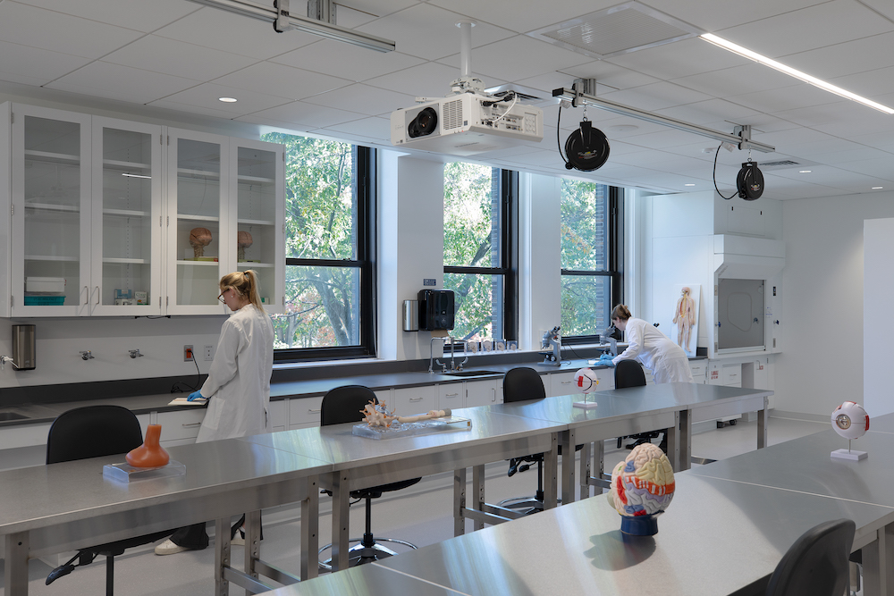 Phase 3 was a continuation of enabling work on the main campus and the full 142,000sf renovation of existing spaces in Lefavour Hall and West Wing. This provided new classrooms, offices, support spaces, a library, and two full floors of labs for students and faculty. The new science labs included Neuro Science, Bio/Chem, Anatomy and Physiology, Micro Genetics, Chemistry and additional research labs. Simmons University also built new labs for Home Health, Surgical, ER, Pediatric, Labor and Delivery, and other various teaching simulation labs for its nursing program. These new labs will allow students to gain access to the same state-of-the-art equipment they will eventually go on to use after graduation.