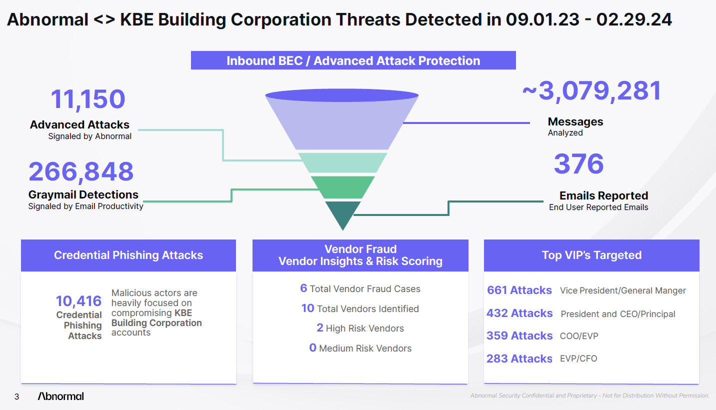 During this same period, Abnormal Security, which was implemented one year ago, filtered through incoming email to all KBE Companies employees to identify nearly 270,000 “grey mail” messages, and kept them out of our inboxes.