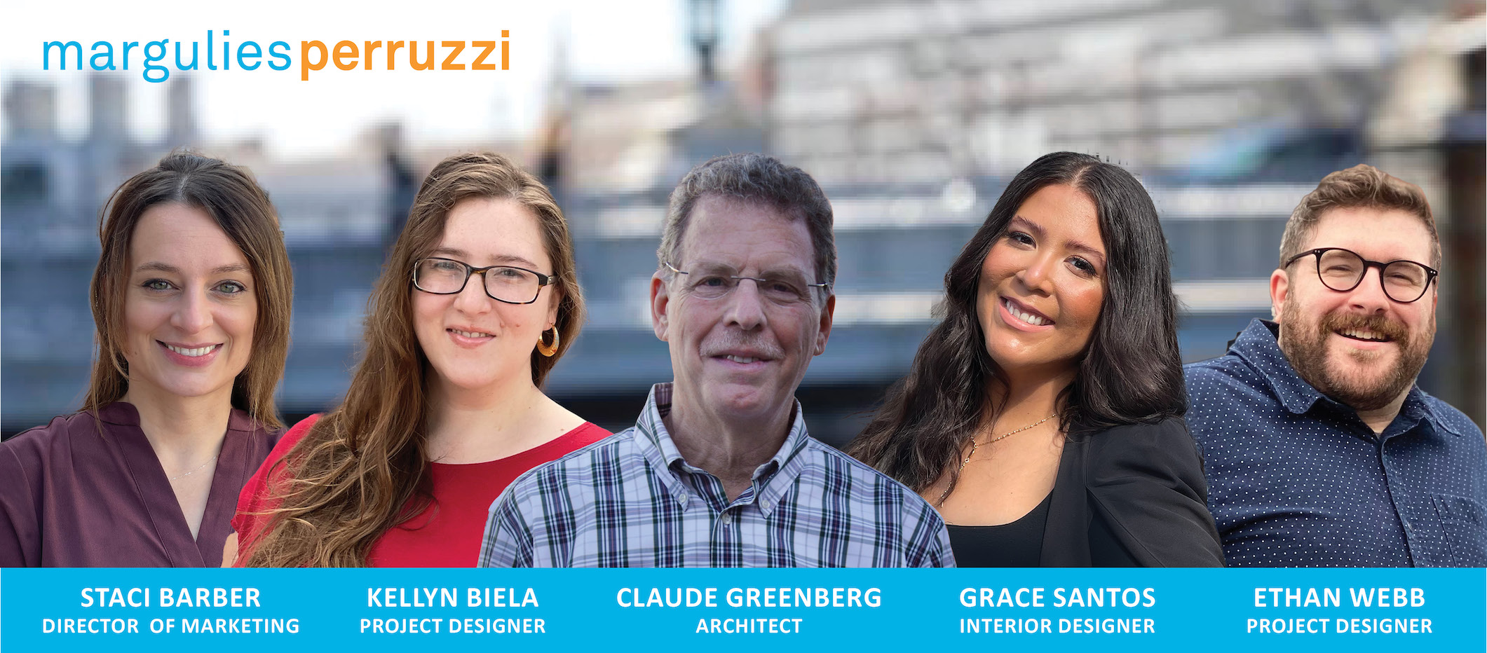 Boston – Margulies Perruzzi (MP) announced it has added five new design and professional staff: Staci Barber, director of marketing; Kellyn Biela, project designer; Claude Greenberg, architect and technical specialist; Grace Santos, interior designer; and Ethan Webb, project designer.