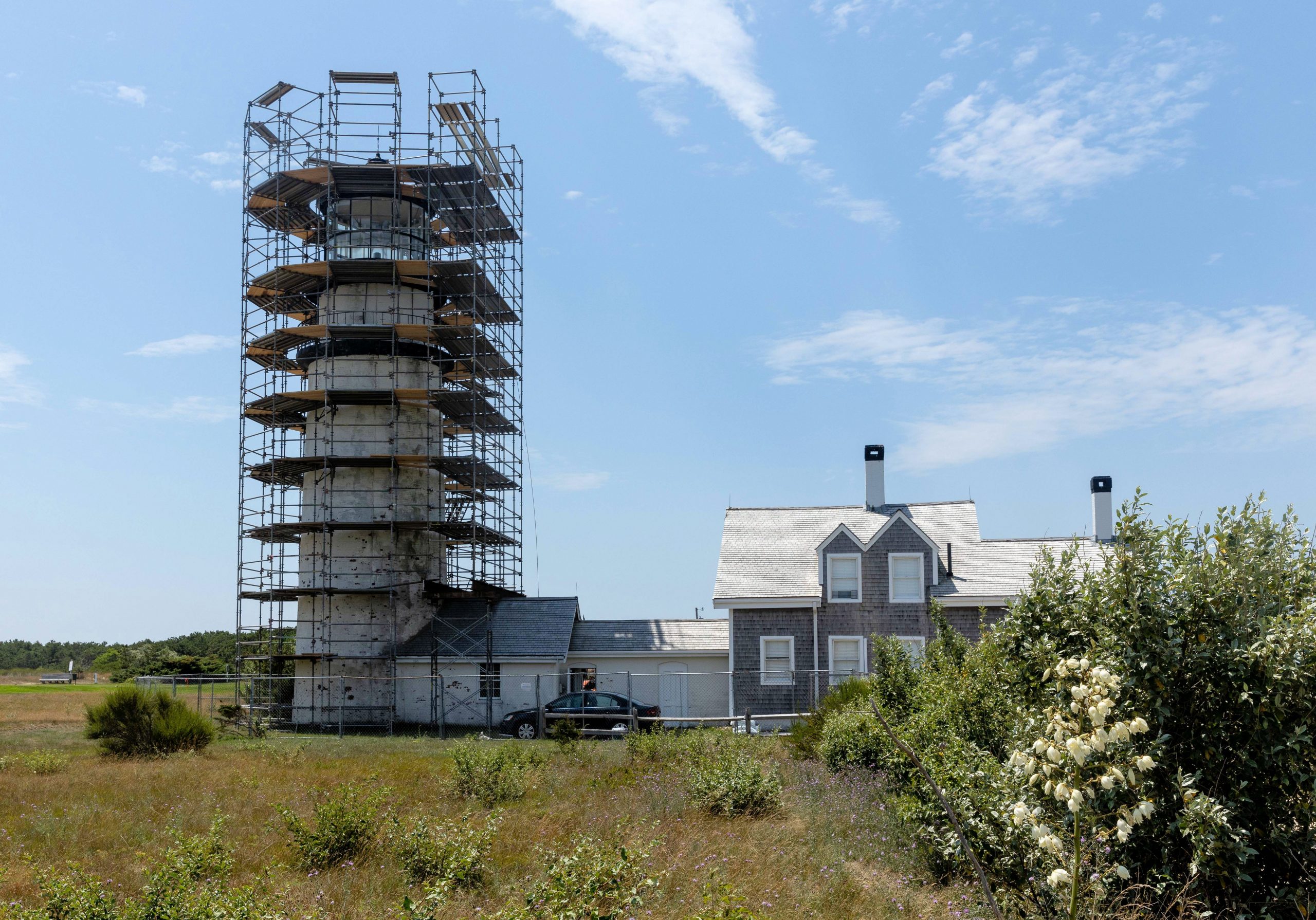 Presently, a major rehabilitation of Highland Lighthouse is underway by the Cape Cod National Seashore, which involves restoring the lighthouse tower’s ventilation system, masonry repair work, and recoating the facade. The intent is to make as few aesthetic changes as possible to maintain the structure’s historic integrity, according to Seashore superintendent, Brian Carlstrom.