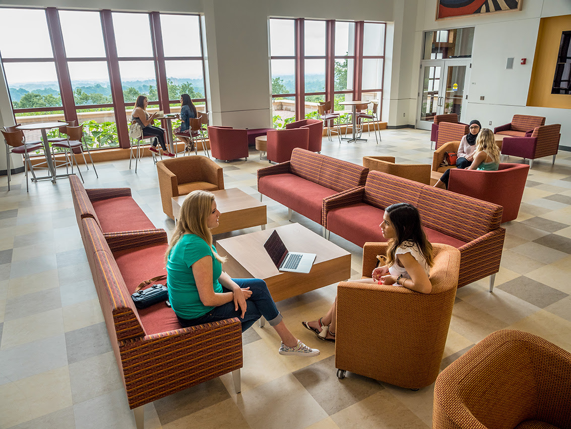 One of the building’s most scenic features is the green roof above the second floor that is used as a study site and retreat. Green roofs are encouraged by LEED as an approach to cool the building and to better retain stormwater. The green roof helps extend the life of the roofing membrane, provides energy savings, and creates valuable public green space. It also provides students with a unique place to conduct studies and experiments. The advantage of the green roof includes extending the green space of the campus, reducing heat transfer through the roof, improving energy efficiency, limiting rainwater surges, serving as an outdoor classroom, and providing an entertainment venue.