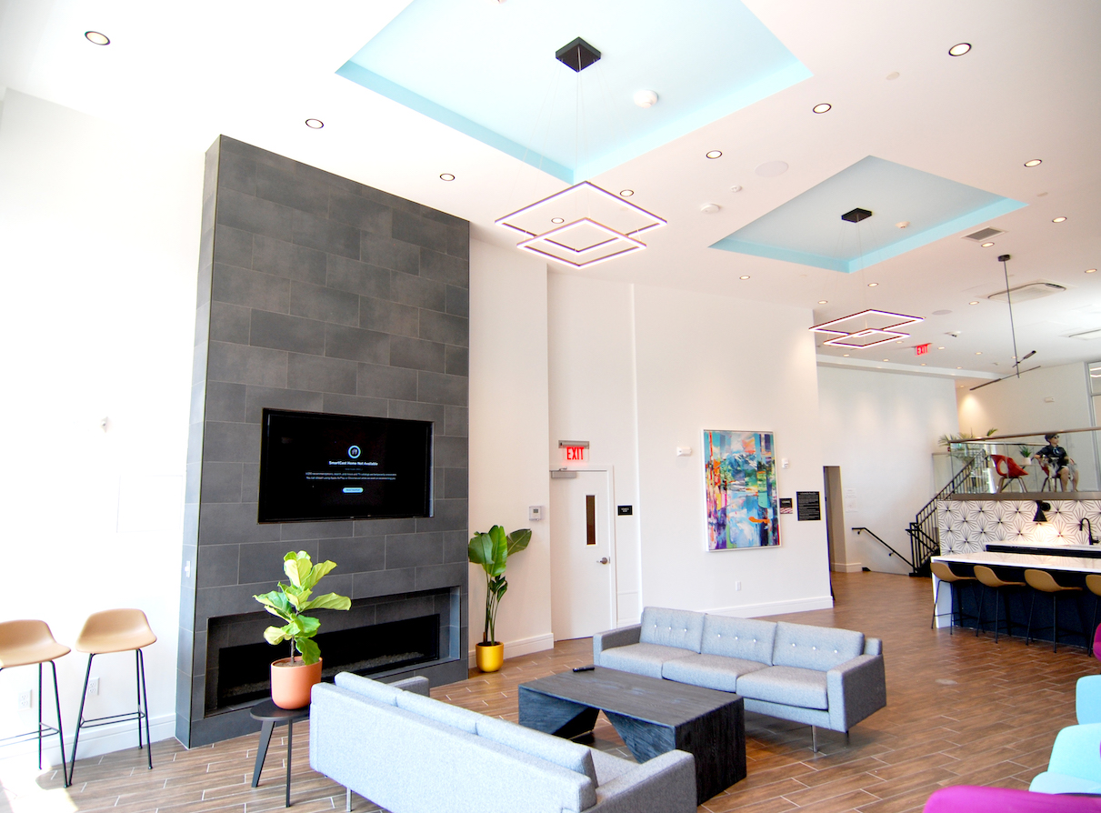 Union 346 is pet-friendly and amenities include a fitness room, bike storage and repair station, dog washing station, lounge with a kitchen and gas fireplace, roof deck with a fire pit, rooftop garden planters, and views of the Boston skyline. The community also features an on-site backyard-style patio, complete with cooking grills and furniture.