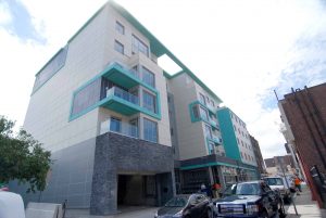Designed by Golden Architects of Quincy, project architect; Perkins Eastman; and Mark Boyes-Watson Architects, the six-story wood-frame structure was constructed over a steel podium concrete slab on deck with below grade parking, and features a natural stone veneer and metal panel exterior facade.