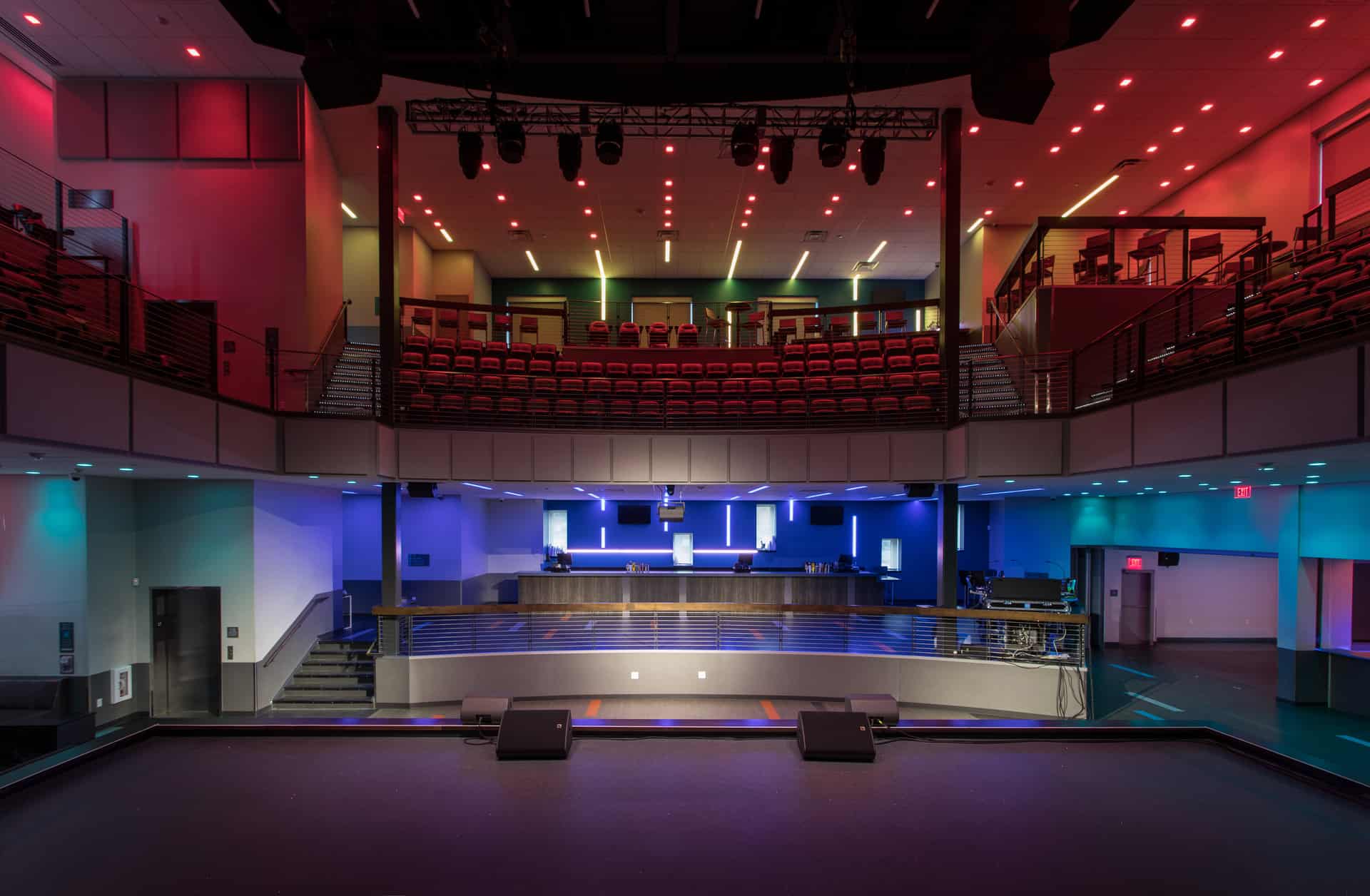 Aura is being hailed by concertgoers for its outstanding acoustics, and it’s also being praised by neighbors for its impressively low level of sound leakage during events. “The design team did a great job of creating excellent sound quality that stays inside the building,” says Rob Frank, WBRC’s commercial studio director.