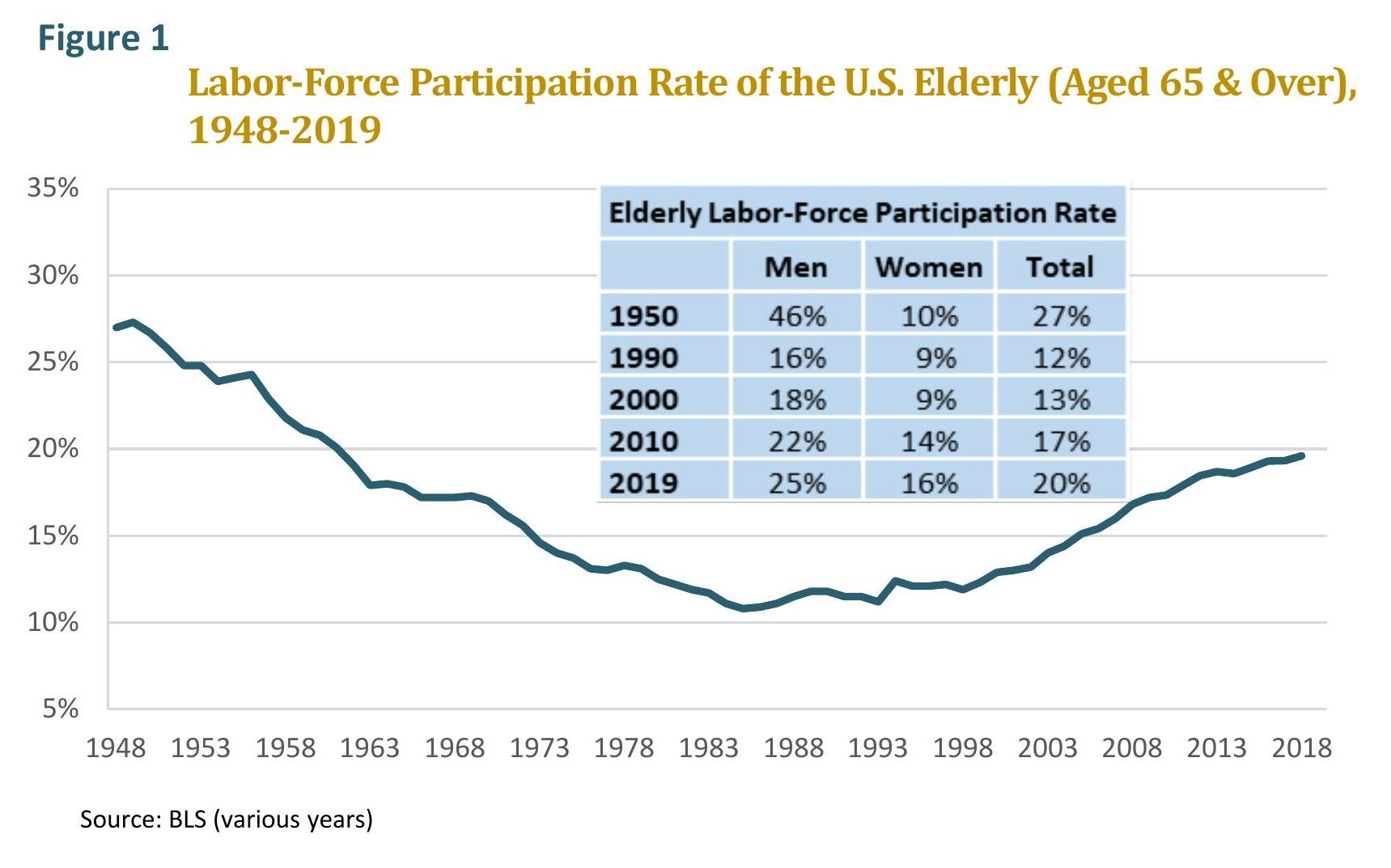 America has already made a start at extending work lives. After falling steeply from the 1950s through the 1970s, the elderly labor-force participation rate bottomed out in the 1980s and 1990s and has since then been rising steadily.