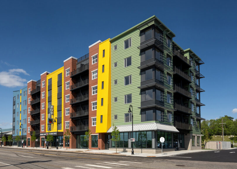 Manchester, NH – North Branch Construction recently completed construction of Red Oak at 409 Elm Street in Manchester. The mixed-use development includes 90 market rate studio, 1-bedroom, and 2-bedroom apartment homes; the corporate headquarters of Red Oak Apartment Homes; and co-working office spaces.