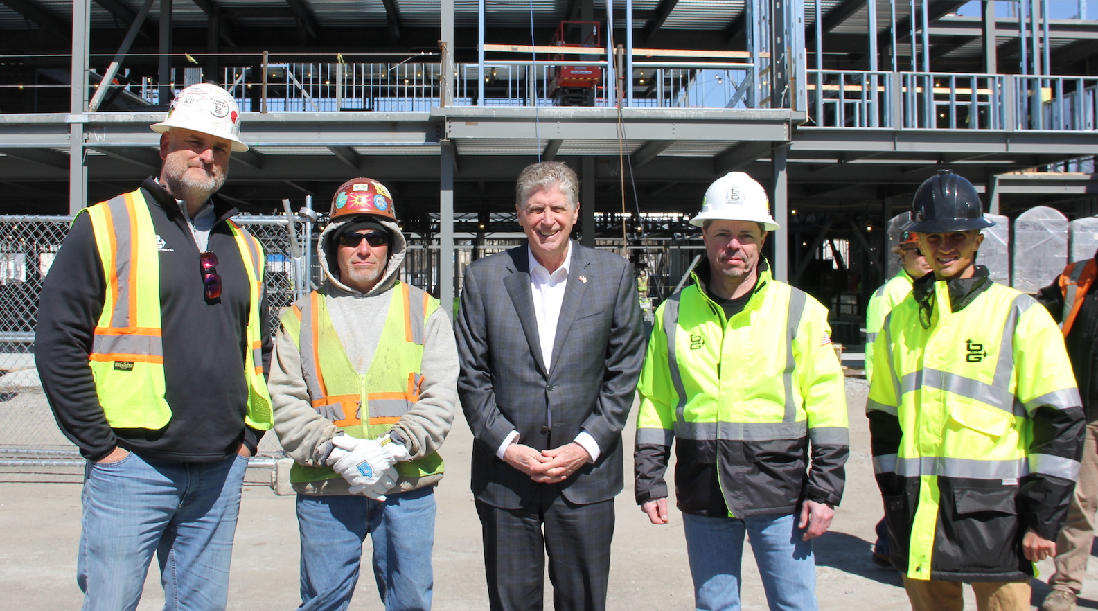 Providence, RI – O&G Industries, Inc. recently celebrated the topping off of the new Frank D. Spaziano Elementary School in Providence. The O&G project team was joined by officials from Providence Public Schools and Rhode Island Dept. of Education (RIDE); representatives of Downes Construction Company, who serve as the owners’ representative; Rhode Island Governor Dan McKee; and Providence Mayor Brett Smiley.