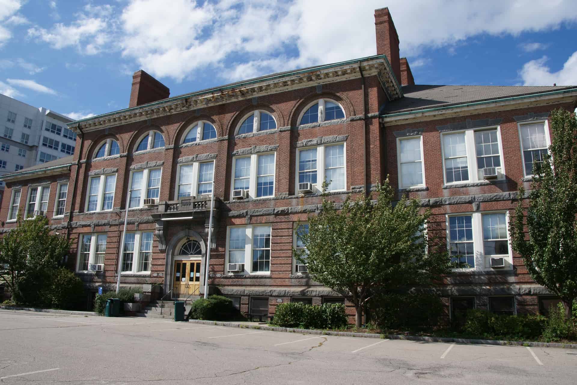 Quincy, MA – Patriot Restoration was selected as the masonry contractor to assist Wessling Architects and Nauset Construction with the renovation of the historic Coddington Hall in Quincy. Coddington Hall was designed by renowned Boston architect Charles Brigham and constructed in 1909. The building was originally used as a grammar school, more recently as a part of Quincy College, and will now serve as the Quincy School administration building. Patriot Restoration’s scope of work involved restoring the exterior of the building to its original appearance and correcting deterioration from more than a century of exposure to the elements.