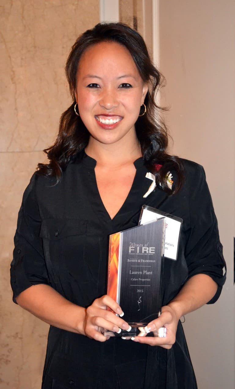 Hudson, MA – Calare Properties (Calare) recently announced today Lauren Plant, Investor Relations at Calare, has been named a 2015 “Woman of FIRE” by Banker and Tradesman. The 5th Annual Women of FIRE award recognizes the best and brightest women in the local Finance, Insurance, and Real Estate sectors.