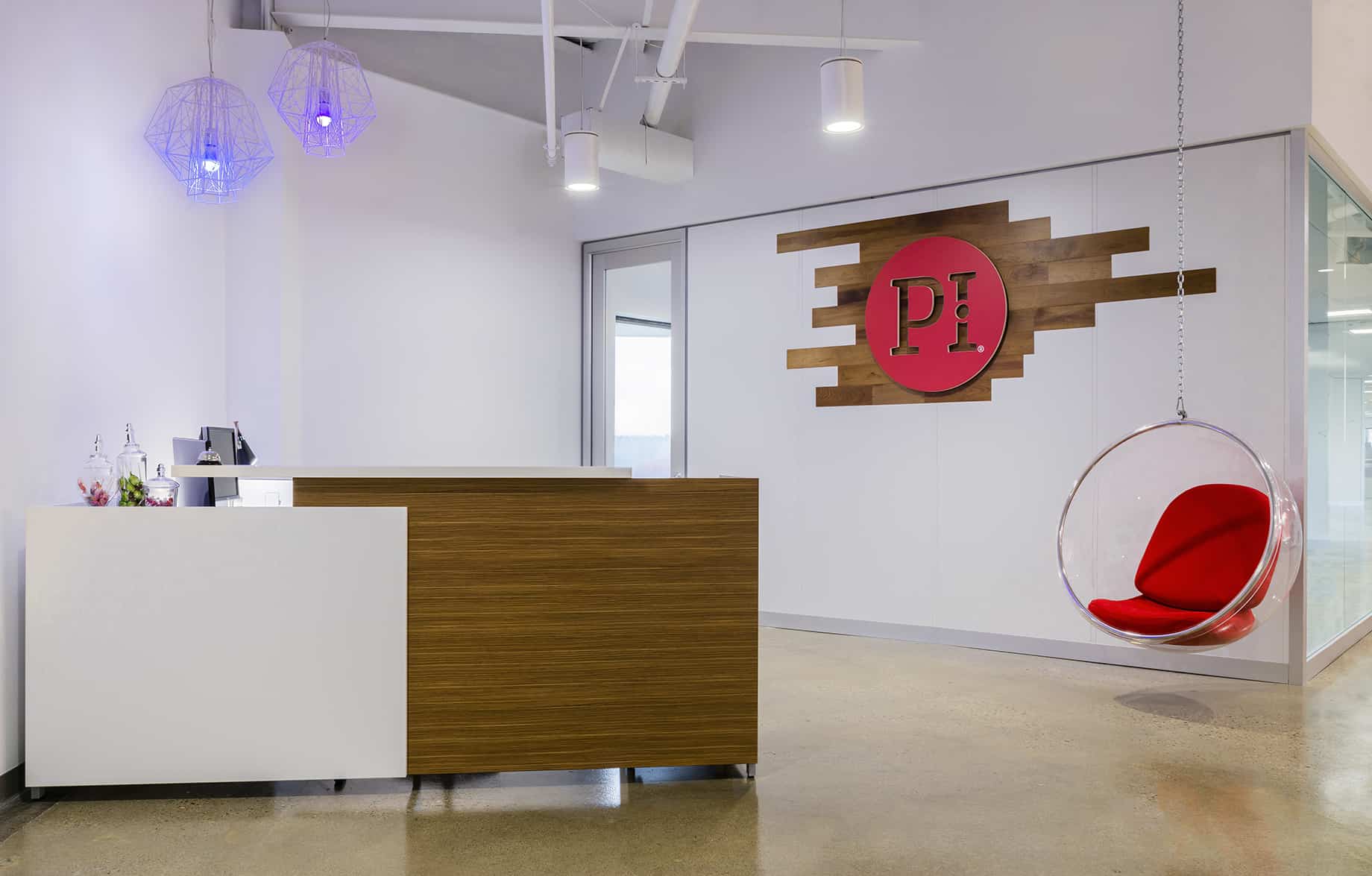 The office space features polished concrete floors that take the place of carpet, allowing employees to get around the office on scooters and skateboards. Ping-Pong and shuffleboard make for nice mini-breaks in the work day. Fun lighting, bean bags, and rocking buoy chairs are scattered throughout to encourage unconventional thinking. Whiteboard surfaces cover most walls and tables, allowing work to get done everywhere. “The new office space truly captures the essence of our brand and really does foster high employee engagement and teamwork,” noted PI’s CEO Mike Zani. “There’s an energy and a buzz in the new space that’s got everyone pumped to be part of PI.”