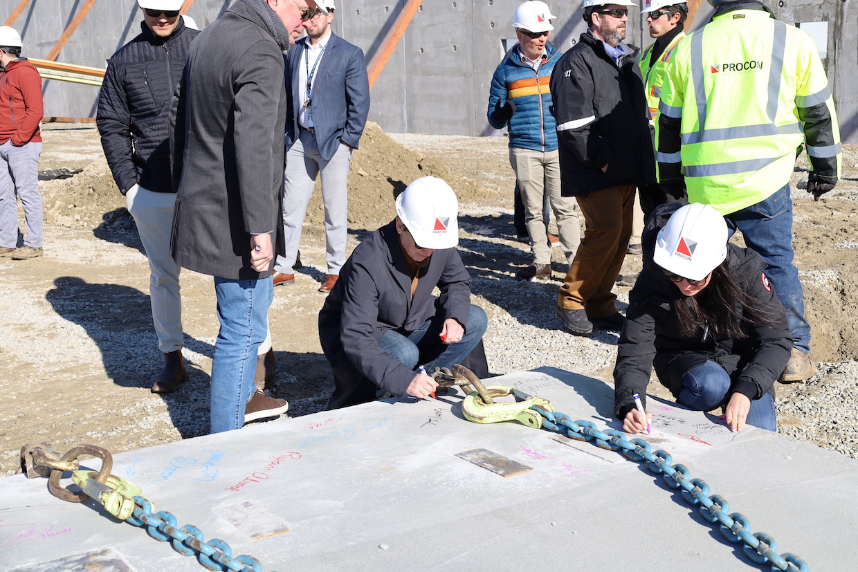 Portsmouth, NH – Co-developers Tidemark and The Kane Company, along with dignitaries and the PROCON design-build team, recently held a ceremony to celebrate the raising of exterior wall panels on a new 102,000sf logistics facility located at 100 New Hampshire Ave. in Portsmouth, within the Pease International Airport.