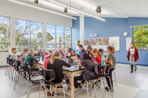 The four of us are mothers who ordinarily spend our days designing spaces – including those for K-12 education, leading a firm of designers, and working to market the work of the firm. Our children range in age from just turned 8 to 14, six in total. Of the six, one is a girl, the rest are boys. Four are enrolled in independent schools, two in public schools. We do not seek here to come to a grand conclusion about this experiment, but rather to relate our own experiences with remote learning and what they have taught us about what was lost when our children left their school buildings and entered our homes to complete the school year virtually.