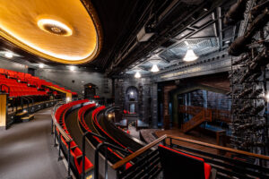 Additional highlights include major upgrades to all systems, including HVAC, sprinkler systems, and electrical, and full upgrades and modernization of all staff, crew, and artist support spaces. Forty-five historic lighting fixtures original to the 1925 building were thoroughly restored throughout the theatre and lobby, including the chandeliers and vintage star fixtures. The project used key elements of sustainable design, moving toward the City of Boston’s goal of carbon neutrality by 2050. Altogether, these substantial improvements to the historic venue will allow The Huntington to expand its services to artists, audiences, staff, and the community at large.