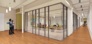 The first three floors of the renovated building will contain more than 30 exam rooms, testing rooms, an optical shop, 16 dental operatory rooms, consultation rooms, labs and imaging stations, and support spaces for Lowell CHC’s CARIÑO program for HIV screening, counseling, and treatment. JMC will also provide a core and shell fit-out on the fourth floor and code compliance renovations on the fifth and sixth floors.