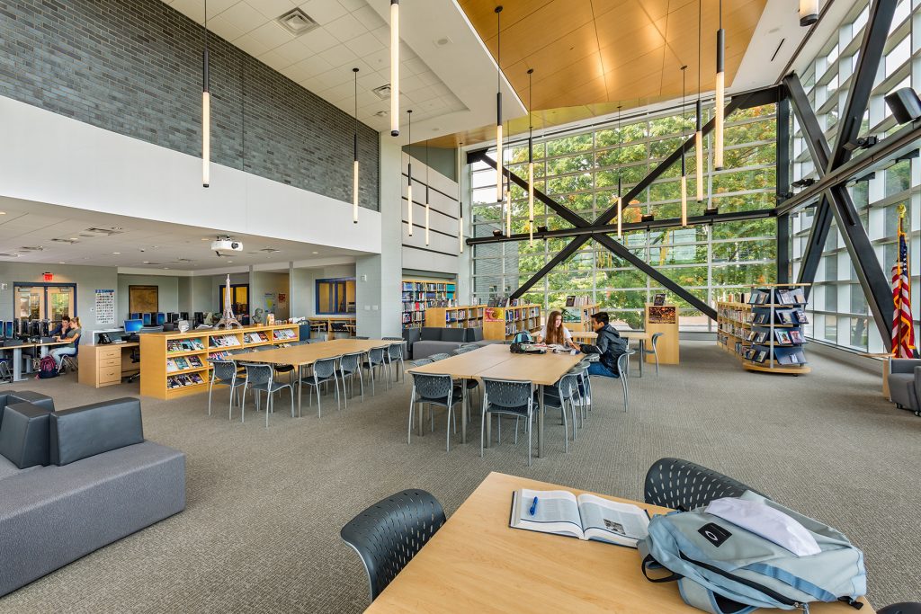 The project included an 87,812sf renovation of the existing building, coupled with a 176,188sf addition that included a new freshman academy, vocational technology facility, kitchen and cafeteria wing. The auditorium, pool, athletic spaces and boiler room were renovated to meet Connecticut high performance building regulations.