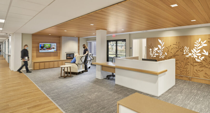 Independent living facilities and Life Plan Communities also benefit from EBD. In an anticipated refresh of common amenities at Kendal on Hudson, residents will enjoy better access to a terrace for functions like gardening and outdoor fitness. The updated Gathering Room will be equipped with a sophisticated hearing system for residents and enhanced screen views for pull-down projection. I-pad-like technology will enable residents to order and pick up food at a grab-and-go counter. An exhibition kitchen will promote community engagement.