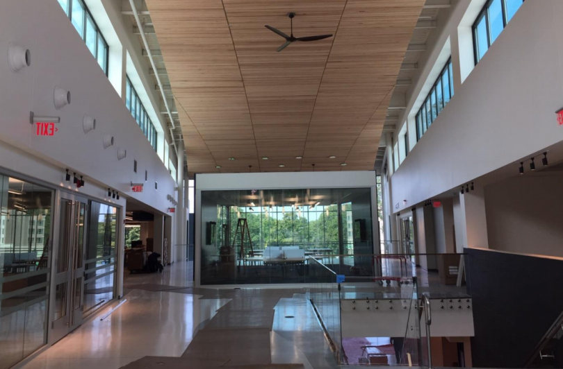 The new library features a greatly expanded children’s literature department, several community meeting rooms, innovative technological advancements, and an outdoor amphitheater. In addition, the building features a large lobby with a cafe for patrons, a digital media lab with updated computer software and space designated specifically for teen activities.