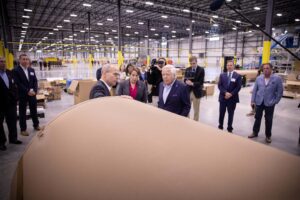 After the ribbon-cutting ceremony, Massachusetts Governor Maura Healey; Yvonne Hao, secretary for economic development for the state of Mass.; State Sen. Robyn Kennedy; and State Rep. Meghan Kilcoyne joined New England Patriots owners Robert and Jonathan Kraft, Town of Boylston officials, PROCON team members and other dignitaries on a tour of the new building.