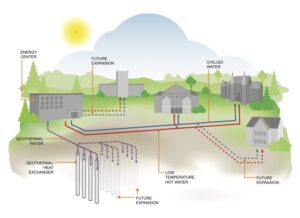 - Conversion from steam to a hot water district-heating network, including upgrading building HVAC systems to be compatible with hot water.