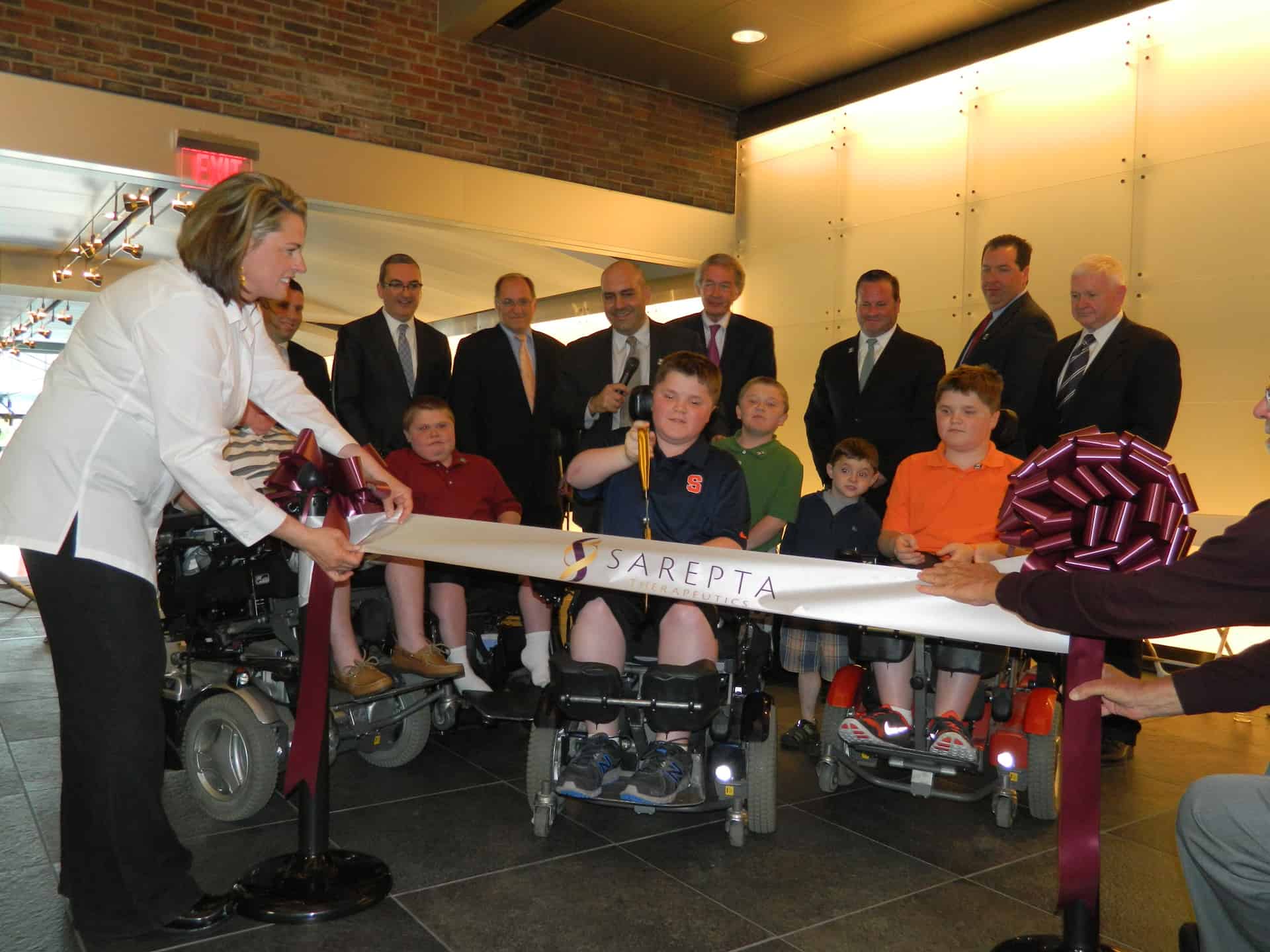 Distinguished guests, patient advocates and patients with Duchenne cut the ribbon at Sarepta’s grand opening ceremony.