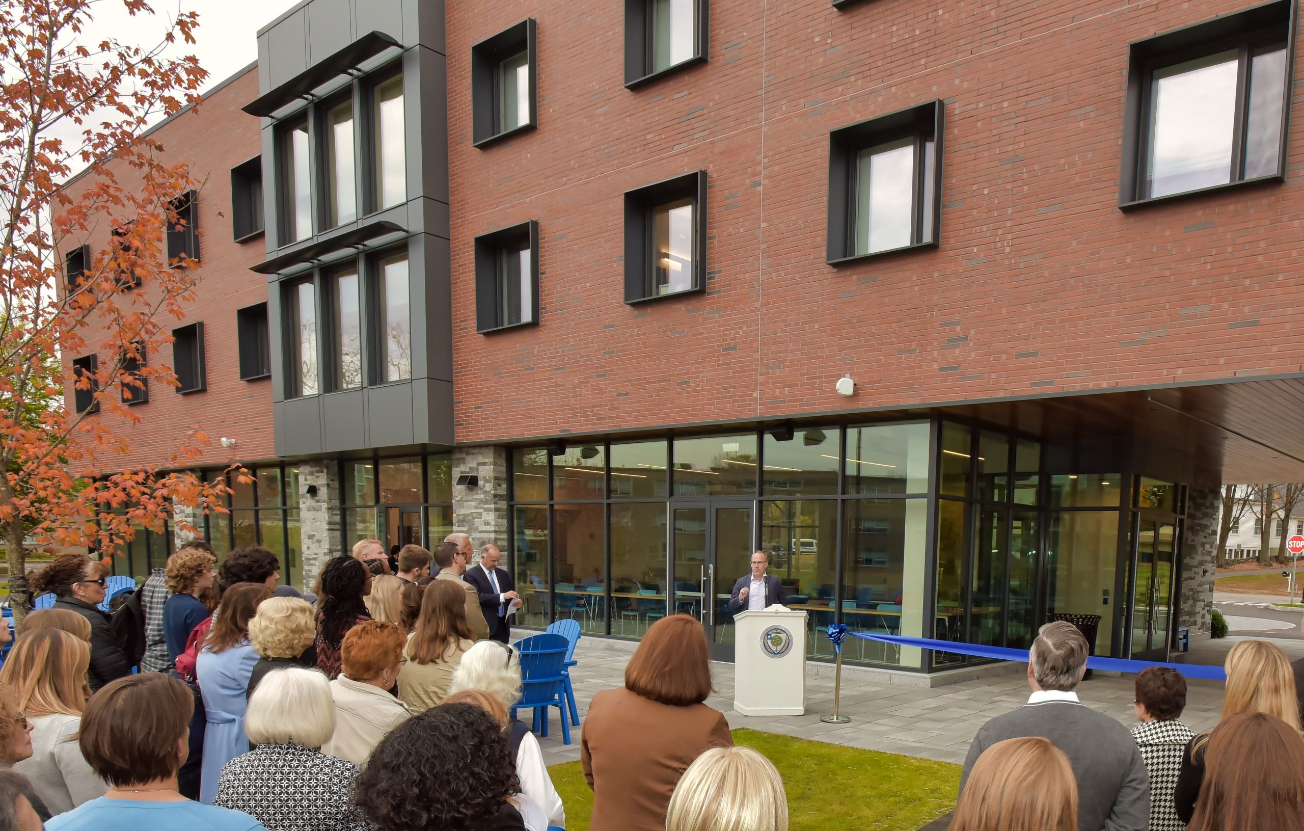Norton, MA – Wheaton College hosted a ribbon cutting of the new Passive House (PHIUS) certified residence hall on Oct. 25 to celebrate this revolutionary design in sustainable student life.