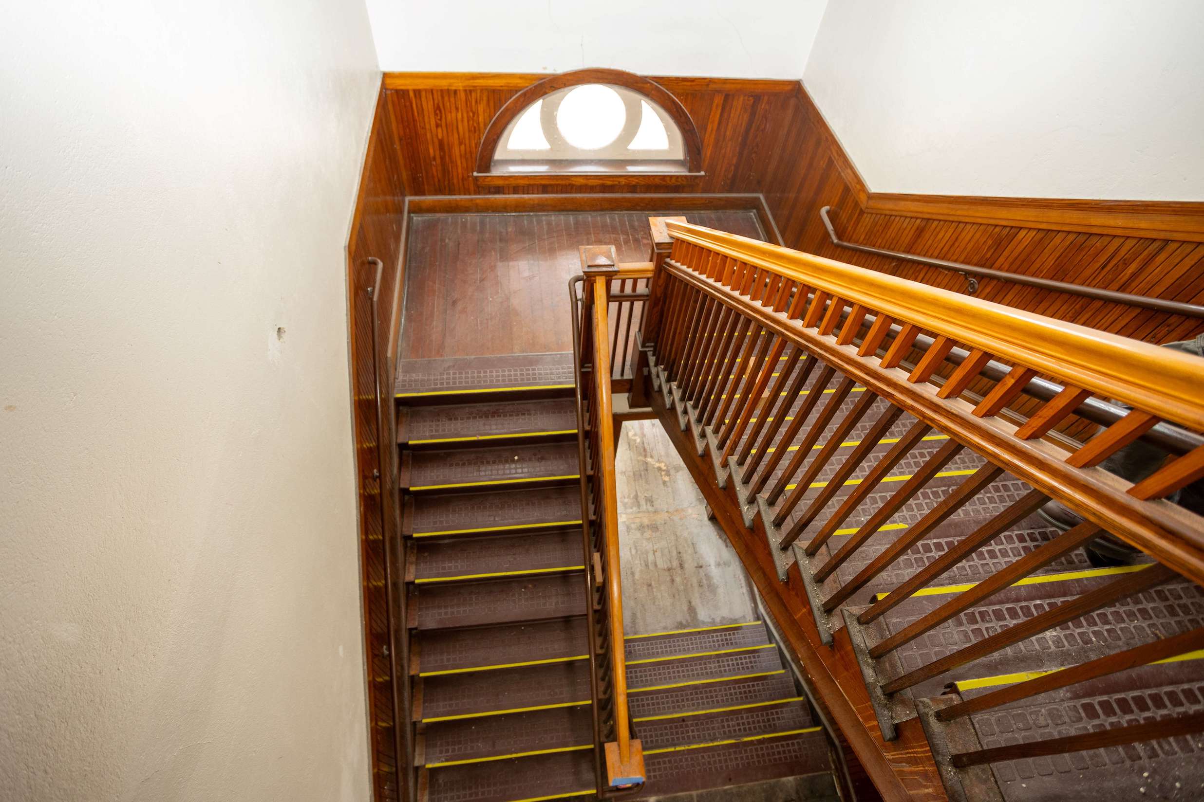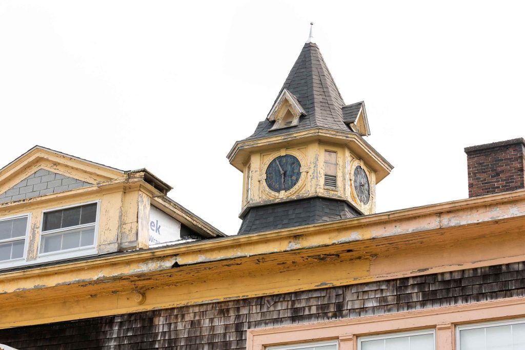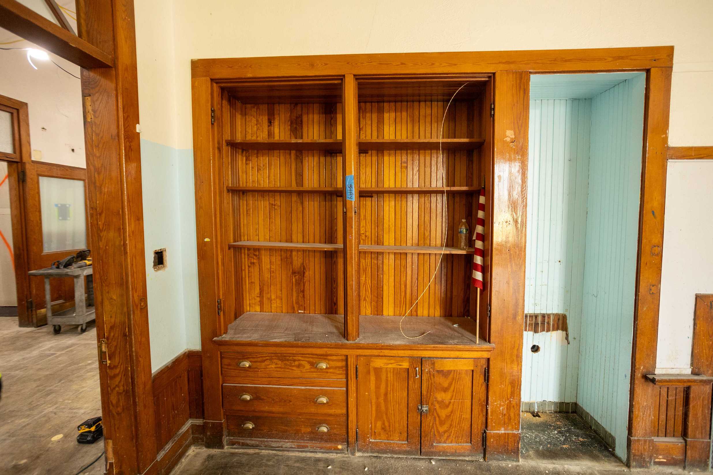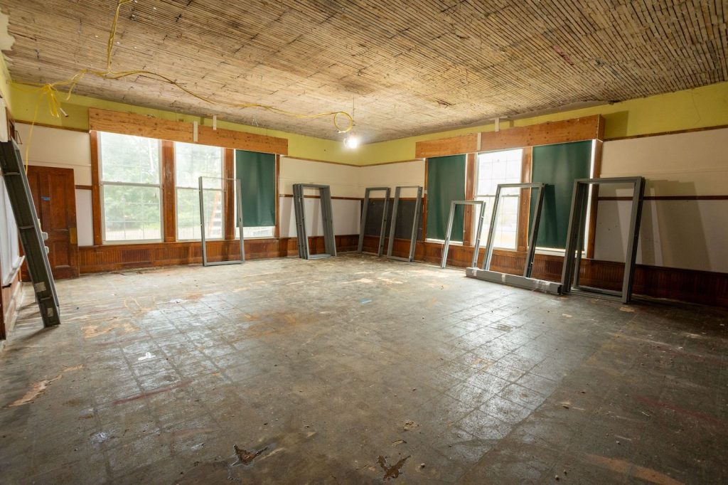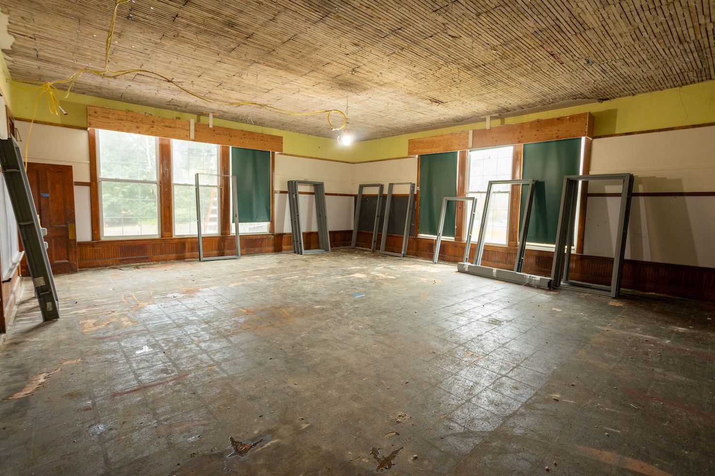 Necessary features are being added to meet ADA compliance while preserving the unique character of the building. Historic elements such as the decorative large staircases, oversized windows, vintage chalkboards, and built-in bookshelves are being preserved and restored. The cupola, adorned with clock faces on all four sides, will also be restored.