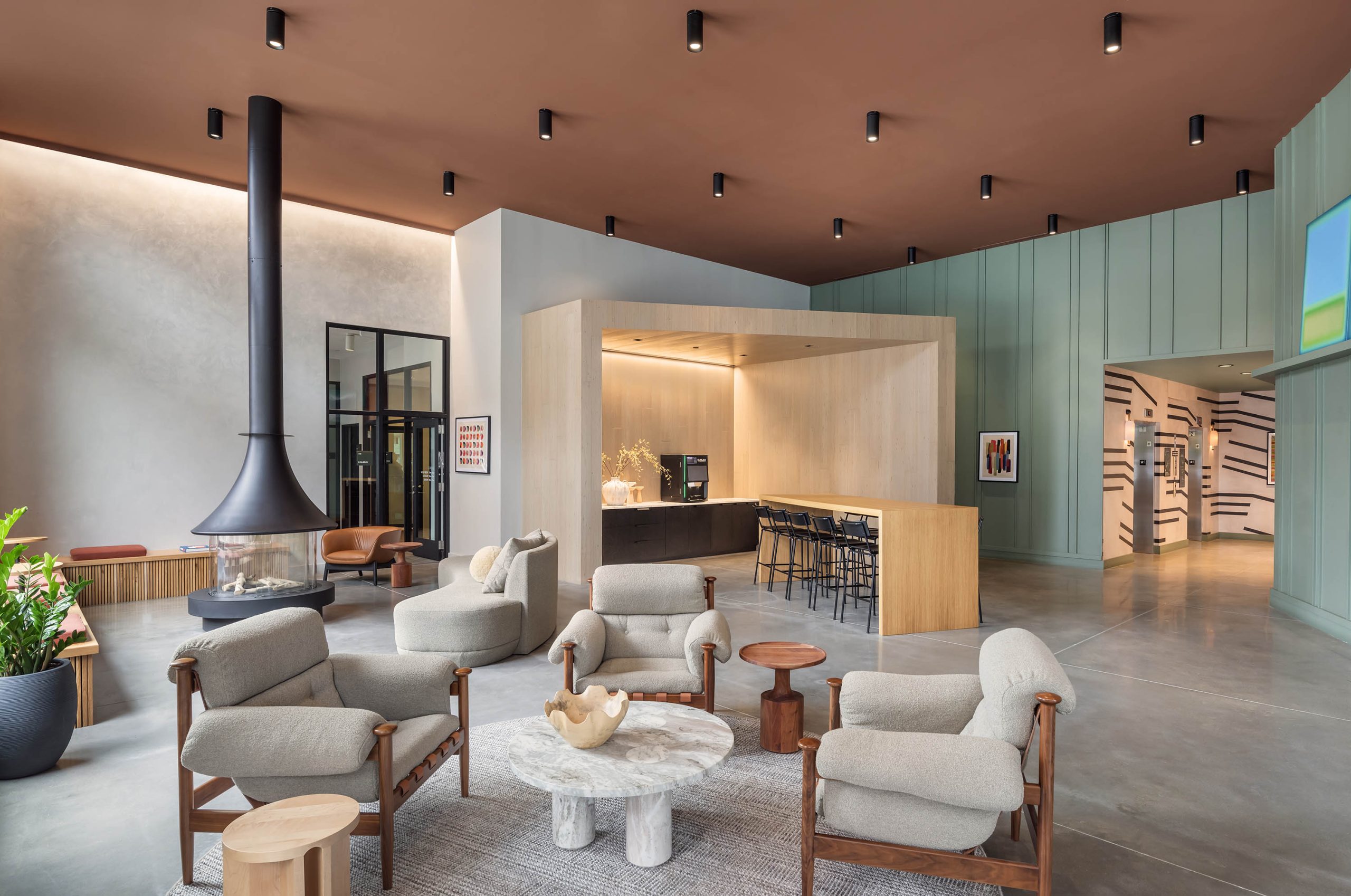 Adjacent to South Standard is The Green at Washington Village, an open green space hosting neighborhood-focused programs including outdoor fitness sessions and live music performances. Additional tenant amenities include an enclosed courtyard, an elevated lounge with skyline views, a fitness center, and a dog grooming spa.