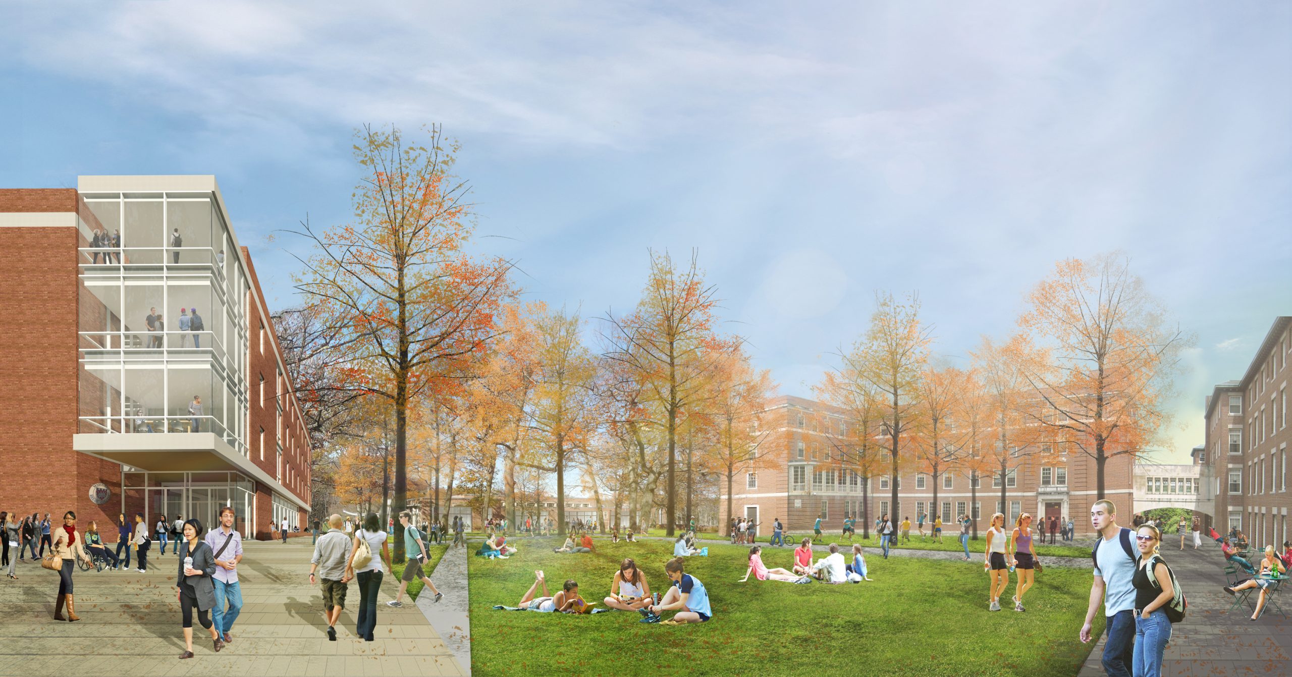 The renovation will include a 72-bed suite-style, four-story dormitory addition that will expand Maria Hall by 31,000sf. The upgrades will feature enhanced fire protection to Angela, Domitilla, and Maria Halls, as well as campuswide utility improvements to the water and electrical services. A new quad and walkway, providing security and lighting, will convert the existing focal point of the campus into a green space, connecting the quadrangle, athletic and science centers, and the Spellman Philatelic Museum. The library entrance will also be changed to face the campus’ new quad.