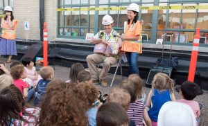Suffolk superintendent, Gavin MacPherson, read the book “Mighty, Mighty Construction Site,” and the children were quizzed on construction flashcards, practiced Suffolk’s “labor scope” by transferring dirt to an excavator bucket, re-built the Landmark Center on a slightly smaller scale, and much more.