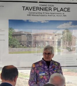 The ceremony also celebrated Acton resident, Nancy Tavernier, who has spent decades advocating for, and making possible, more affordable housing opportunities in Acton. Among the speakers who addressed Acton’s support for affordable housing and Nancy Tavernier’s dedication were Senator James Eldridge, Middlesex and Worcester; Representative Danillo Sena, 37th Middlesex District; a representative from the Office of Congresswoman Lori Trahan, Third Congressional District; David Martin, chair of the Acton Select Board; Clark Ziegler, executive director, Massachusetts Housing Partnership; Carl Howell, chief program officer of CTI; and Janet Adachi, chair of the Acton Community Housing Corp. Steven Joncas, director of real estate development for Common Ground Development Corp., emceed the event.