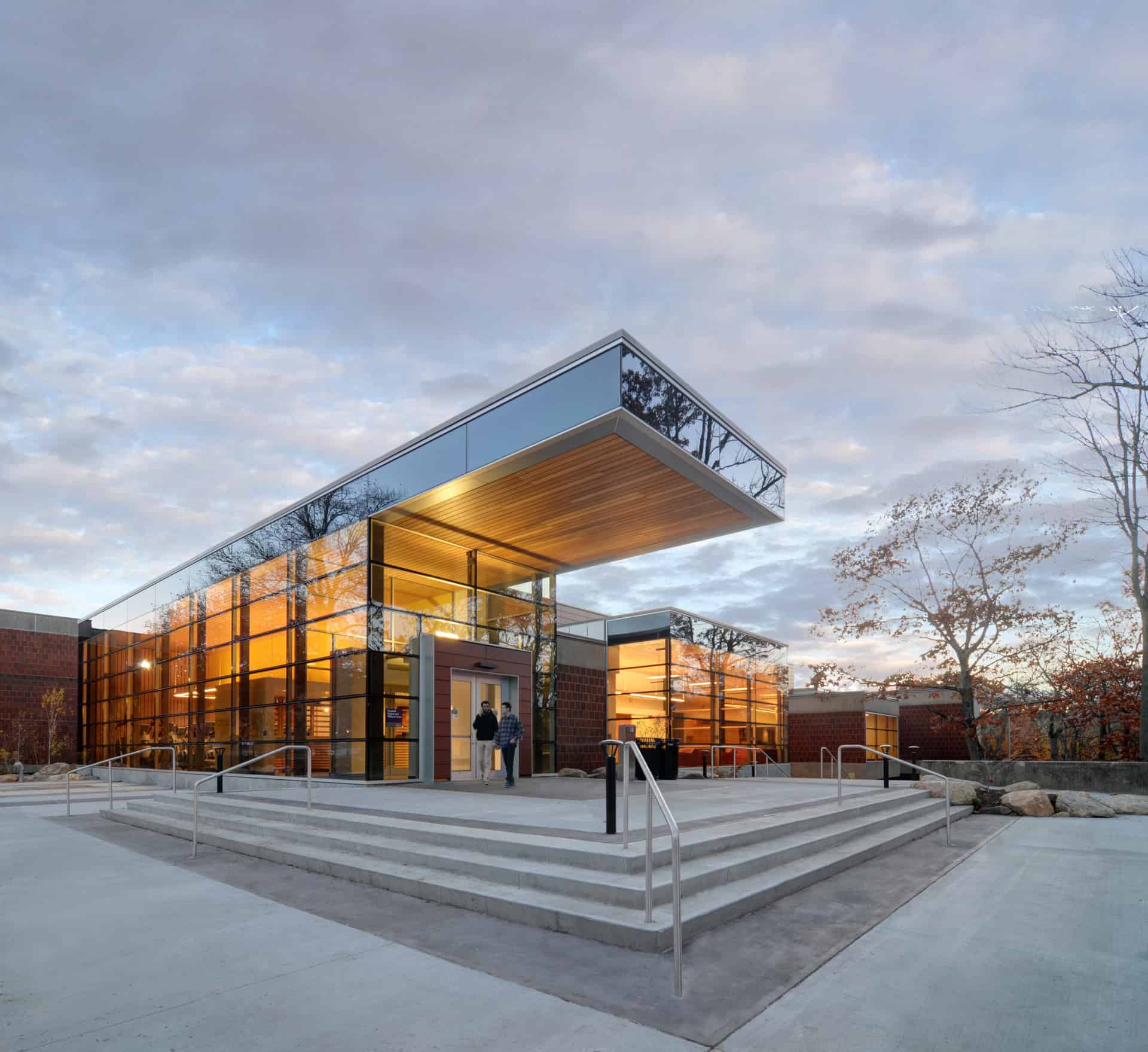 The project renovated the 29,618sf, former Roger Williams Dining Hall, originally constructed in 1969, into a 33,000sf full-service fitness and wellness center. The renovation retains most of the original structure and will include 8,000sf of new construction to accommodate a new street façade and main entrance. The increased space will help alleviate the functional shortcomings and over-crowding of existing fitness and wellness activity space. The new building is a vibrant, modern full-service, fitness and wellness facility in the heart of the Kingston Campus, with close access to both academic, residential, and other auxiliary enterprise facilities. Undoubtedly the Fascitelli Fitness & Wellness Center promises to be the new “social hub” on campus!