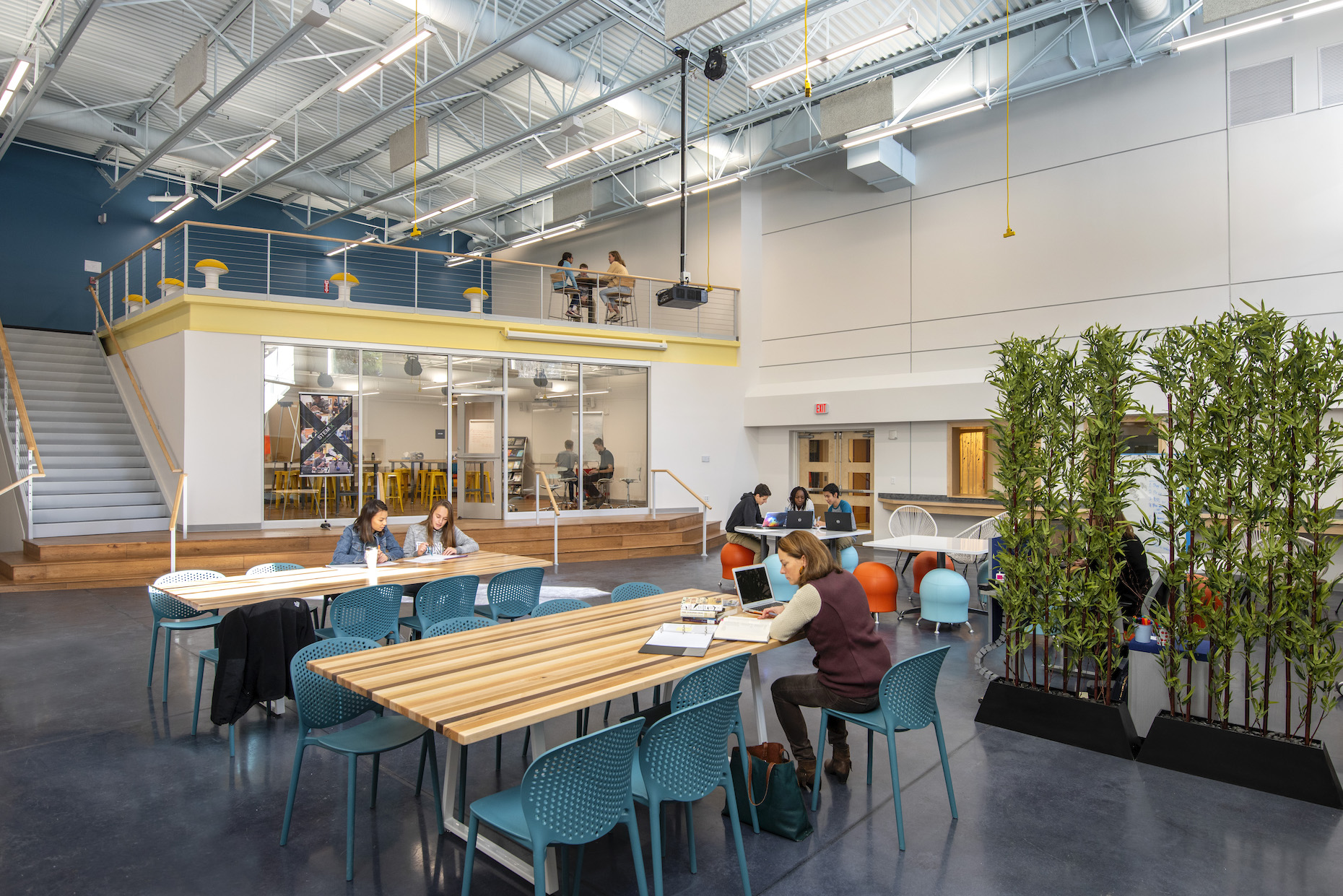 The new athletic facility features three regulation-sized basketball courts, a movement studio, cardio room, weight training area, locker rooms, team and training room spaces. The Science and Innovation Center space features an X-Learning classroom, three bio/chem labs, two physics labs, a robotics lab, maker space, and an “Inspiration Lounge” on a new mezzanine level.