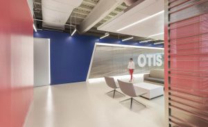 Tecton Architects embraced this responsibility when approaching an office expansion/consolidation project about three years ago for the Otis Service Center in Bloomfield, Conn. As we programmed and test fit the space, an open concept revealed itself as the best approach to achieving the client’s goals, which included the provision of a wide variety of meeting spaces. The space had existed for decades as a single-story building with a low ceiling and fluorescent lights. Within the scope of this renovation, both the call center and the more traditional workspaces would be dramatically expanded.
