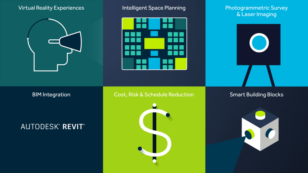 How do we do it? Unlike other firms, we bring full strategy, design, and construction integration right from the beginning of projects. Aligned with our full-service methodology, uniBIM is our proprietary process that integrates a collection of different technologies across all phases of the project journey, from strategy through design and to delivery. From the beginning of the process, intelligent space planning integrates a 3D scan into BIM where virtual reality experiences can be created.