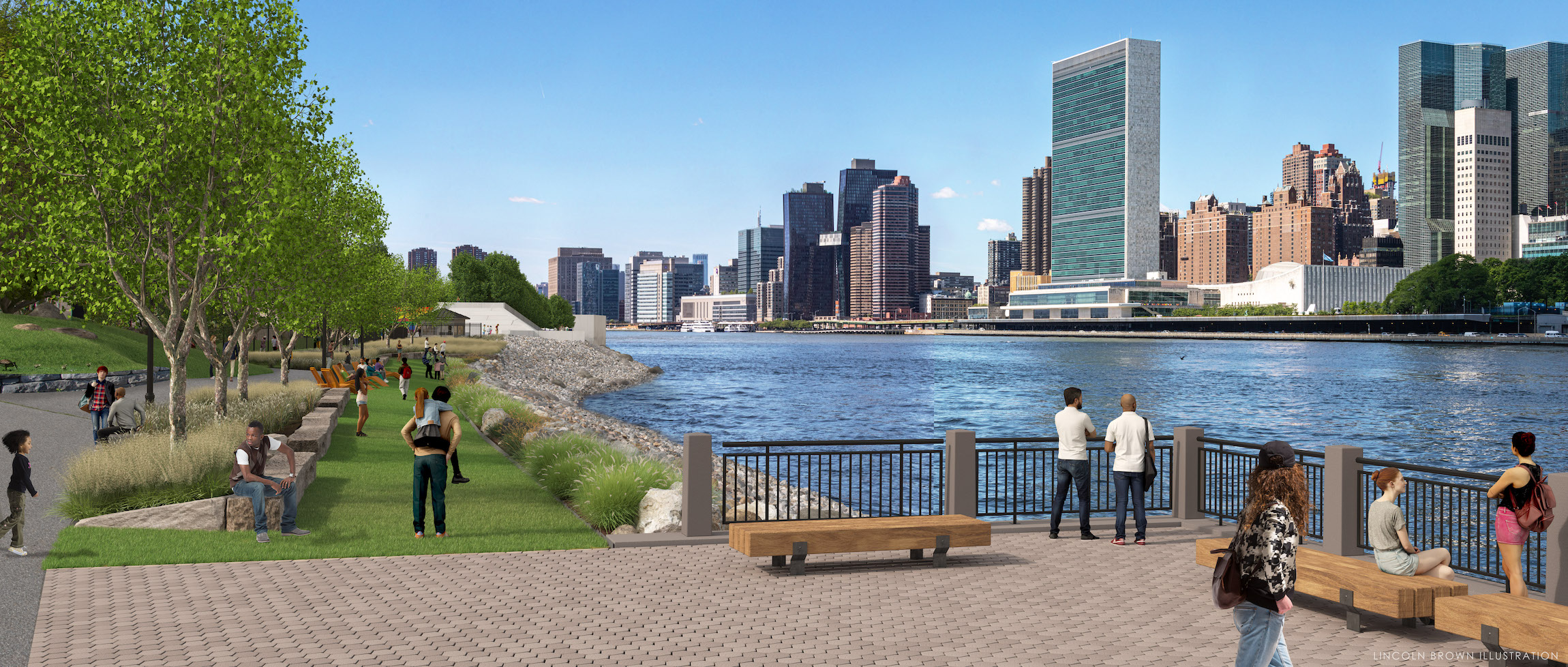 - Resilient planning encourages durable, lasting waterfront design that enhances habitat and allows for public access to the water using the Waterfront Alliance’s WEDG Guidelines (Southpoint Park, New York City, N.Y.)