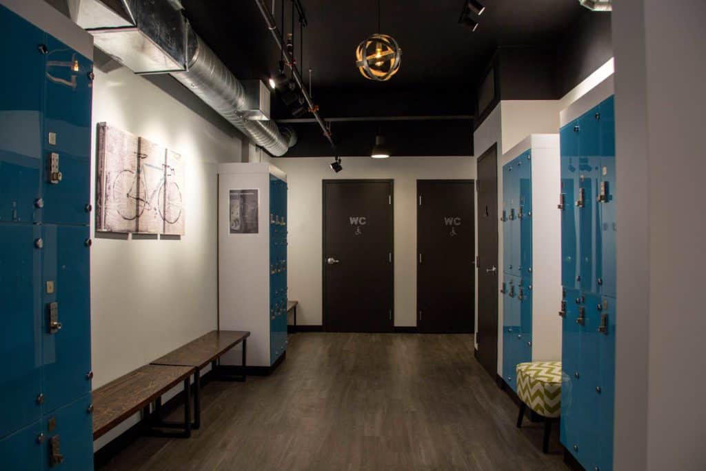 The sparkling facility features a cycling theater with 32 Stages SC3 bikes, a yoga, Pilates and TRX suspension training room, and changing facilities. Brown Fenollosa Architects designed the studio, which is located in the former Arlington Lithographic Building, a well-known landmark in town.