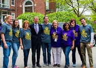 Paul Hewins, COO, Skanska USA Building and his staff join Police Commissioner William Evans and St. Mary’s Center President Deirdre Houtmeyers, St. Mary’s staff, and AGC Director of Client Relations, Joe Kelly at the Annual Day of Service. / photo: Colleen Reilly, B Media
